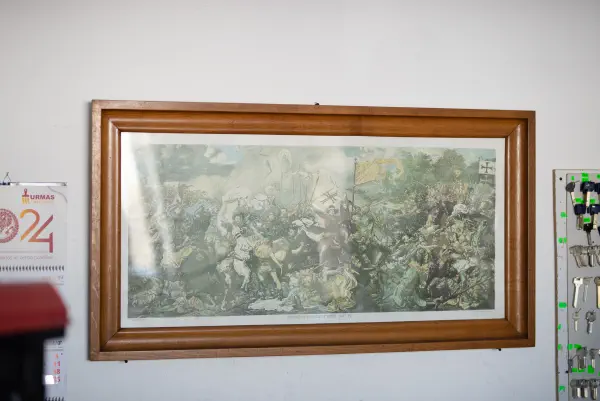 Dabar jo dirbtuvėje krenta į akis ant sienos kabanti didelė Žalgirio mūšio paveikslo reprodukcija. Gal Rimantas yra istorijos mėgėjas?